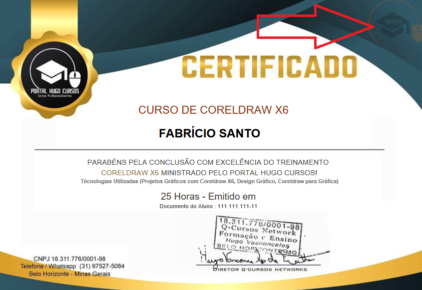 O código será apresentado no canto superior direito do certificado, um número dentro de uma marca d'agua, conforme mostrado na imagem ao lado, basta inserir aqui este número ou usar a url